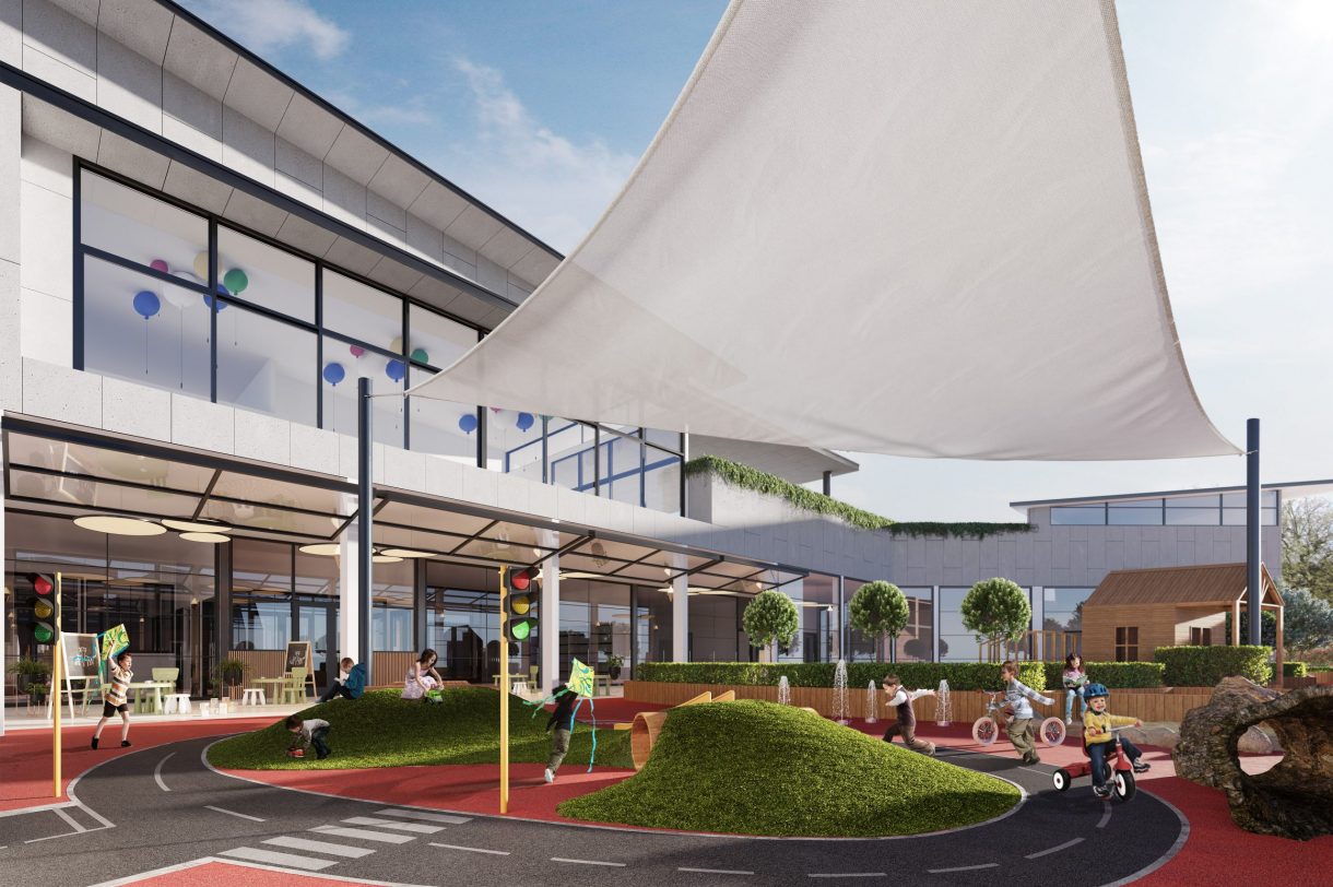 On the ground floor, the centre’s younger children have access to separate indoor and outdoor learning spaces, an arts and crafts room and a range of specialty facilities designed to inspire curiosity and encourage learning through play. Classrooms on the first floor accommodate the centre’s pre-schoolers, with access to interactive and school-ready programs such as cooking and digital technology. Underground parking provides direct lift access to the first-floor preschool area as well as the centre’ kiosk and foyer area.